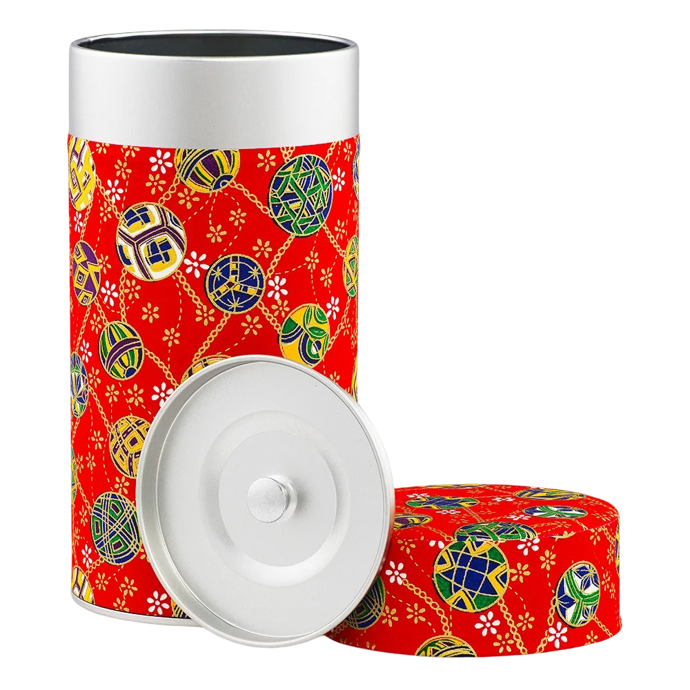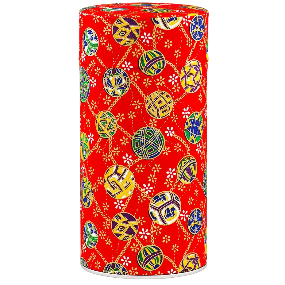 Teedose mit doppeltem Deckel-Verschluss, beklebt mit japanischem Papier (Washi) in Calais, Frankreich.