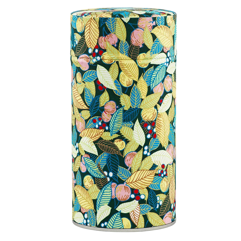 Teedose mit doppeltem Deckel-Verschluss, beklebt mit japanischem Papier (Washi) in Calais, Frankreich.
