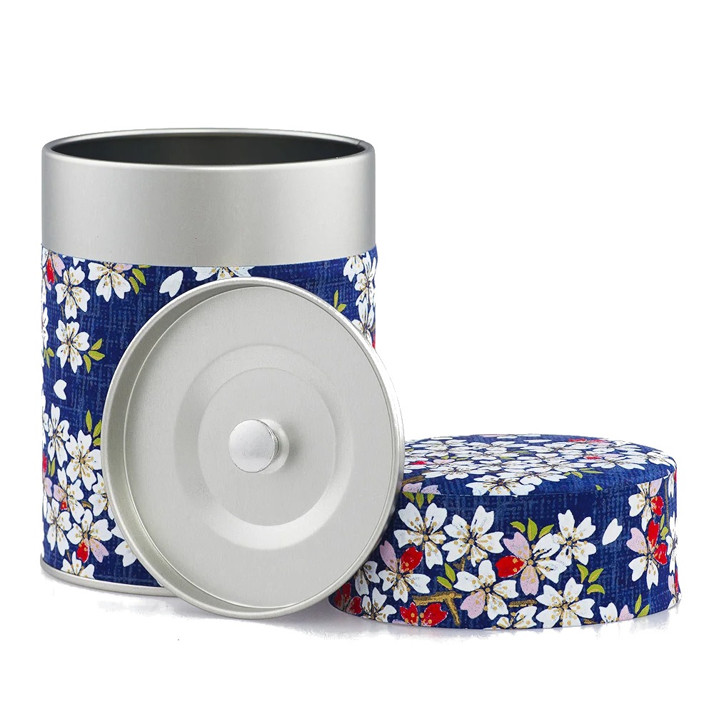 Teedose mit doppeltem Deckel-Verschluss, beklebt mit japanischem Papier (Washi) in Calais, Frankreich.