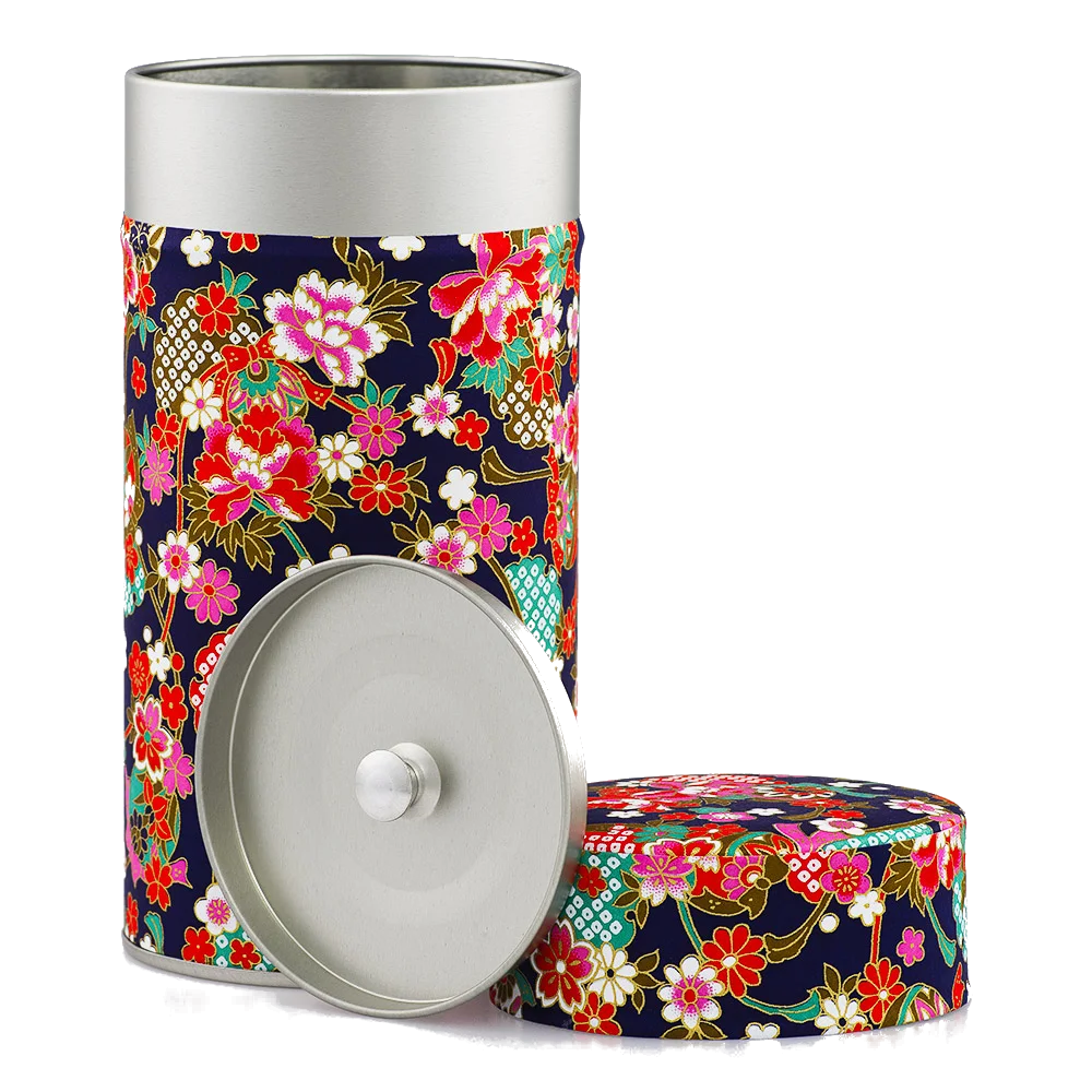 Teedose mit doppeltem Deckel-Verschluss, beklebt mit japanischem Papier (Washi) in Calais, Frankreich.