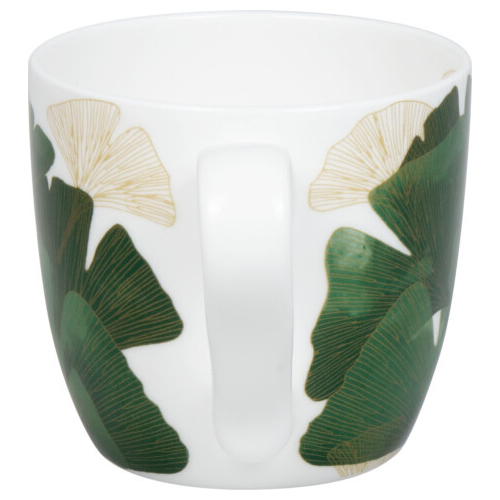 Diese edle Bone China Tasse verfügt über ein außergewöhnliches Design in Grün- und Goldtönen. Die filigranen Ginkgo-Blätter zieren den Becher und dienen als Symbol der Eleganz. Das hochwertige Material und die edle Verarbeitung machen den Becher perfekt für den täglichen Gebrauch.