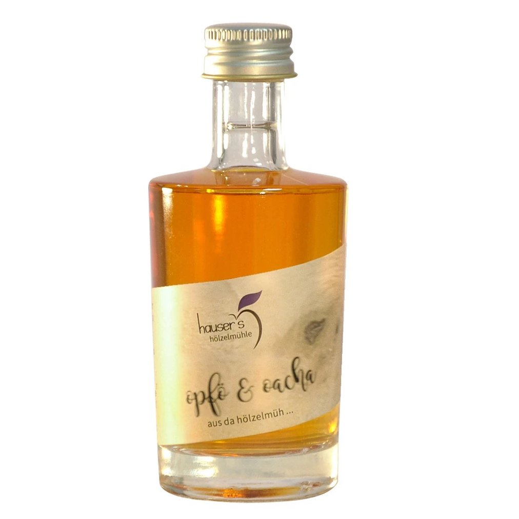Apfelbrand aus 60 verschiedenen Apfelsorten im Eichenholzfass gereift.