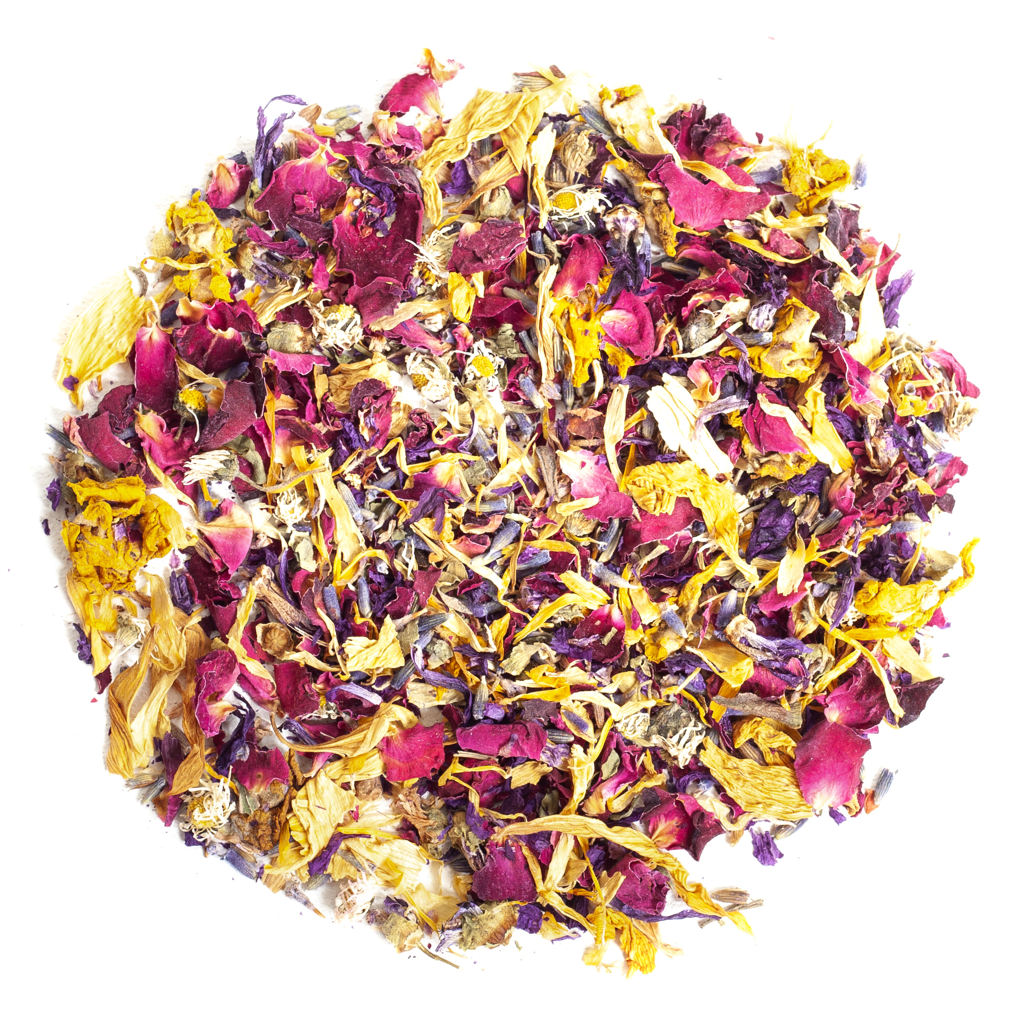 Diese farbenfrohe, eigens von unserer Teehandlung kreierte Kräuterteemischung ist wahrlich ein Blütenmeer – Rosen-, Holunder-, Malven- und Sonnenblumenblätter, abgerundet mit Ringelblumen, Gänseblümchen und Lavendel. Der blumige Duft und der feine, liebliche Geschmack wecken unweigerlich Frühlingsgefühle, und lassen an sonnige Blumenwiesen und unbeschwerte Tage denken.