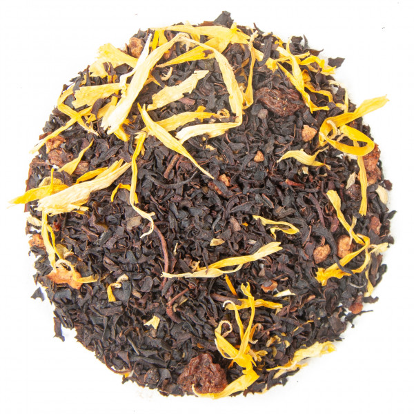 Schwarzer Tee, Weinbeeren, Pfirsichstücke, Ringelblumenblütenblätter, natürliches Aroma.